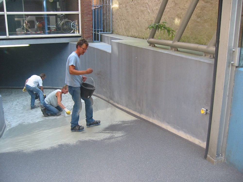 Bescon levert vloeren voor verschillende industrieën. Zo zijn er vloeren geschikt voor de chemische industrie, de vliegtuigindustrie en de automobielindustrie. Een voorbeeld van een vloer die wij hebben gelegd binnen de chemische industrie is deze vloeistofdichte kunststofvloer. De vloer werd gelegd bij een tankenpark van een petrochemisch bedrijf. Het tankenpark werd voorzien van een op afschot aangebrachte chemicaliënbestendige vloeistofdichte kunststofvloer.