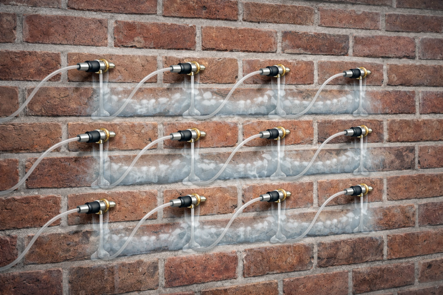 Het doel is om een vochtwerende barrière in de muur te creëren door middel van een injectiegel die in de poriën van het metselwerk dringt. De gel hardt uit en maakt het materiaal waterafstotend.