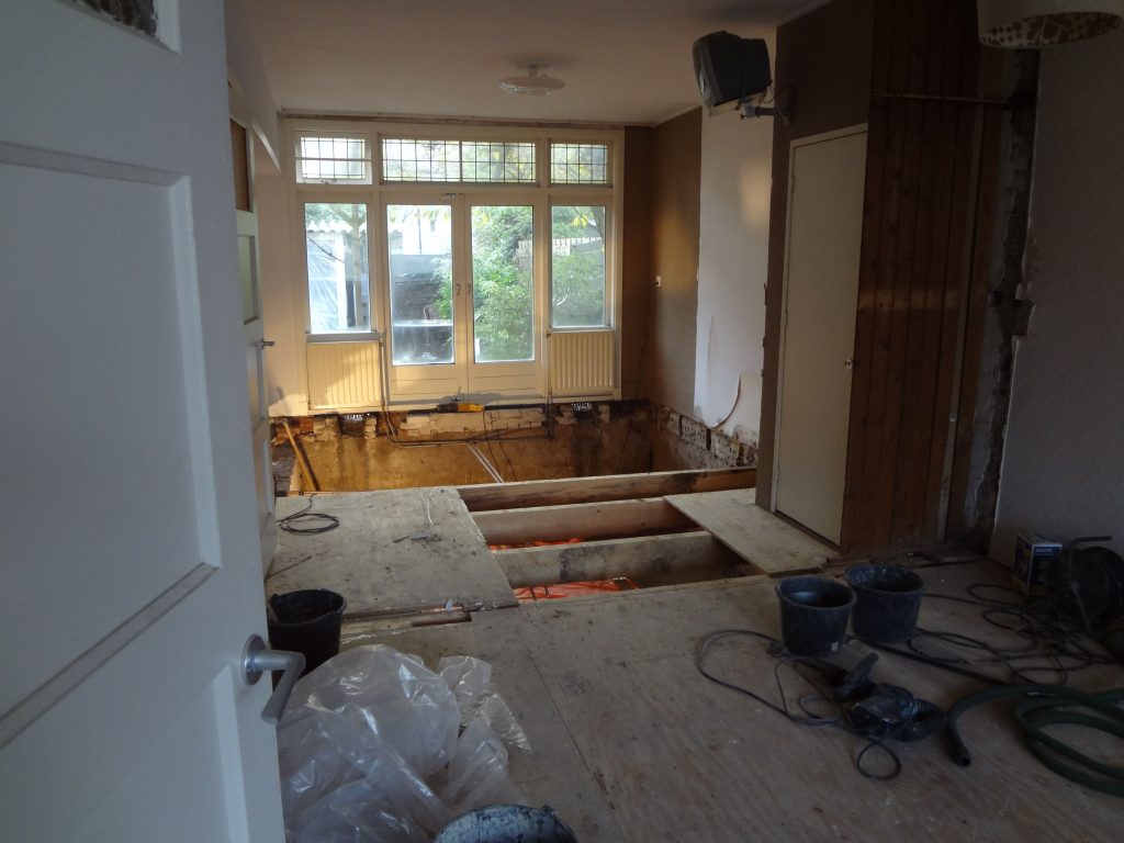 Tijdens de afdichting van de kelder werd zwamaantasting in de kruipruimte ontdekt. De aangetaste balken werden vanuit de kruipruimte vervangen. Dit deden we door aangetaste delen af te zagen en vervolgens nieuwe balken aan te lassen. Hierbij zagen we erop toe dat de oplegging van de nieuwe balken geen contact maakte met de stenen.
